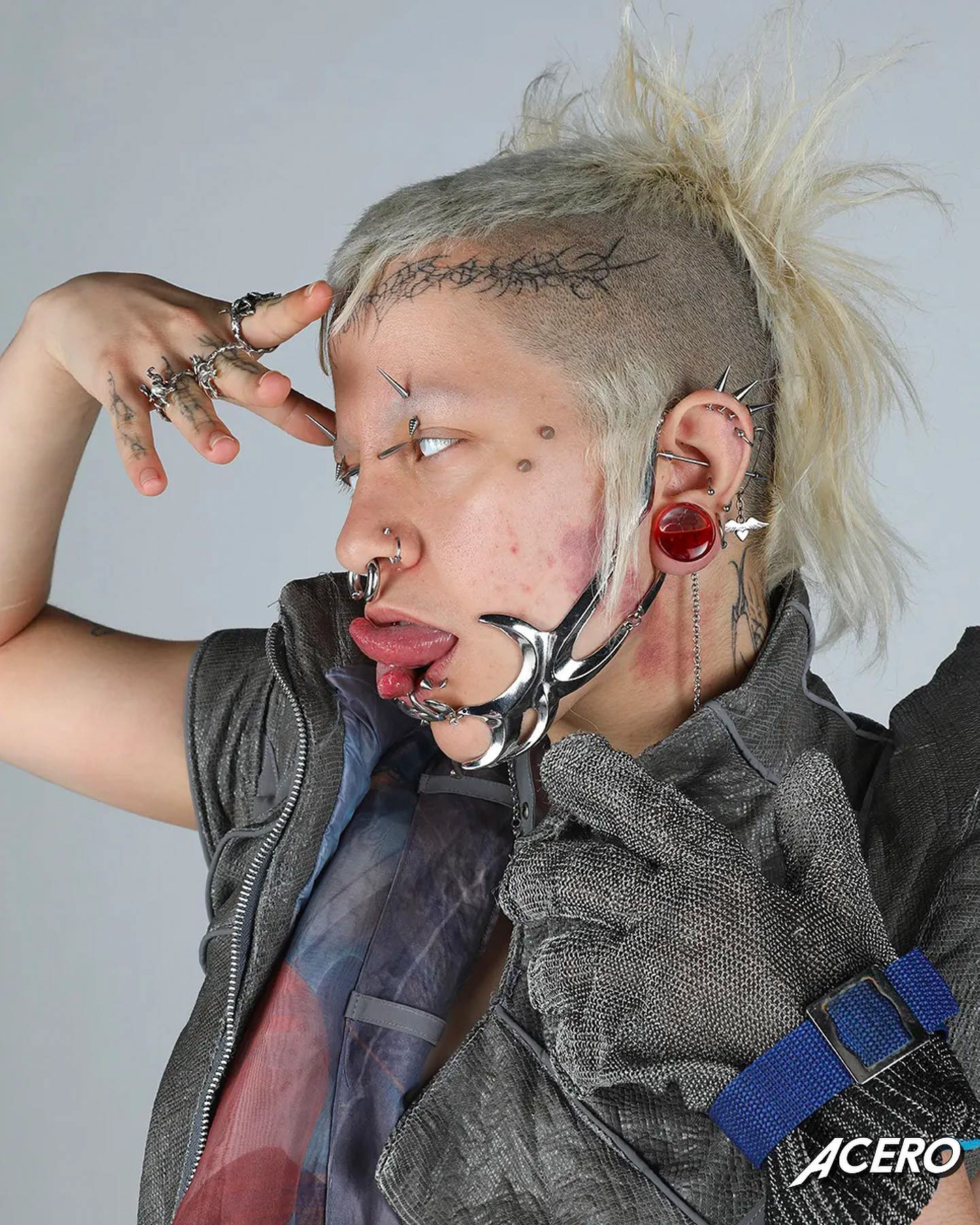 PHOTOS OF LOMO (CIBERPONY) WEARING "LOMO SJAG-NRV" COLLECTION, PUBLISHED IN ACERO MAGAZINE.