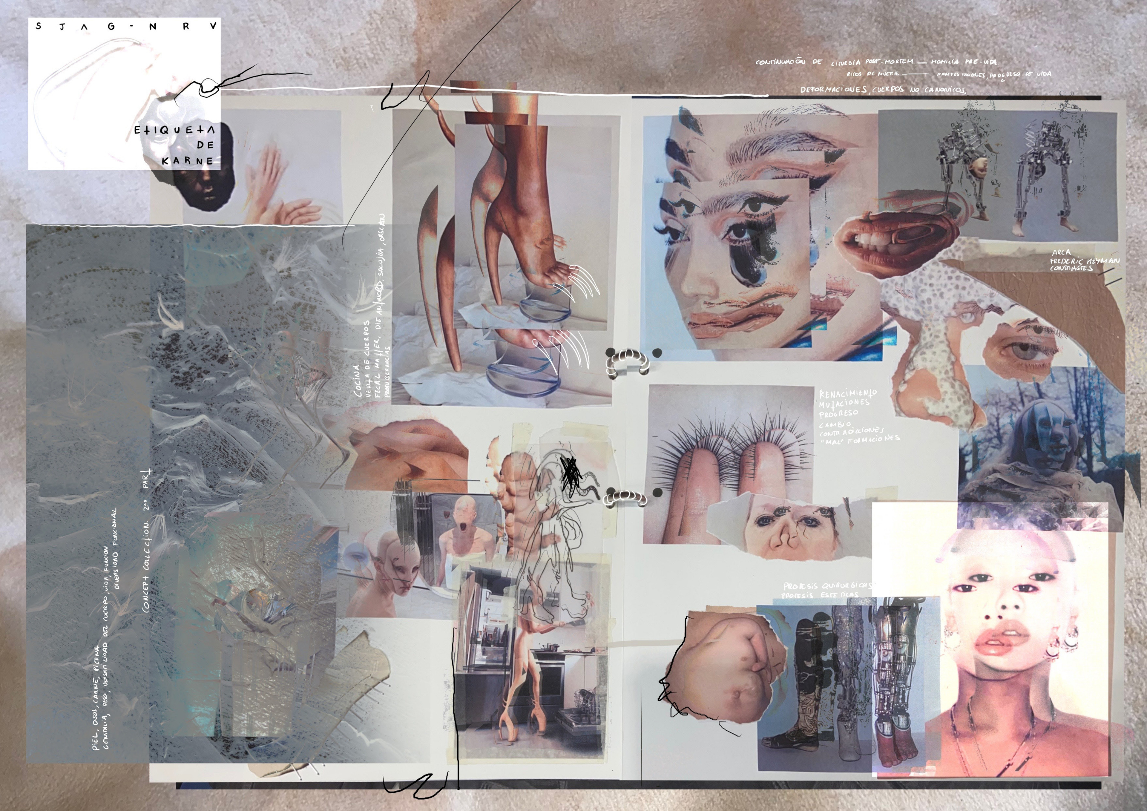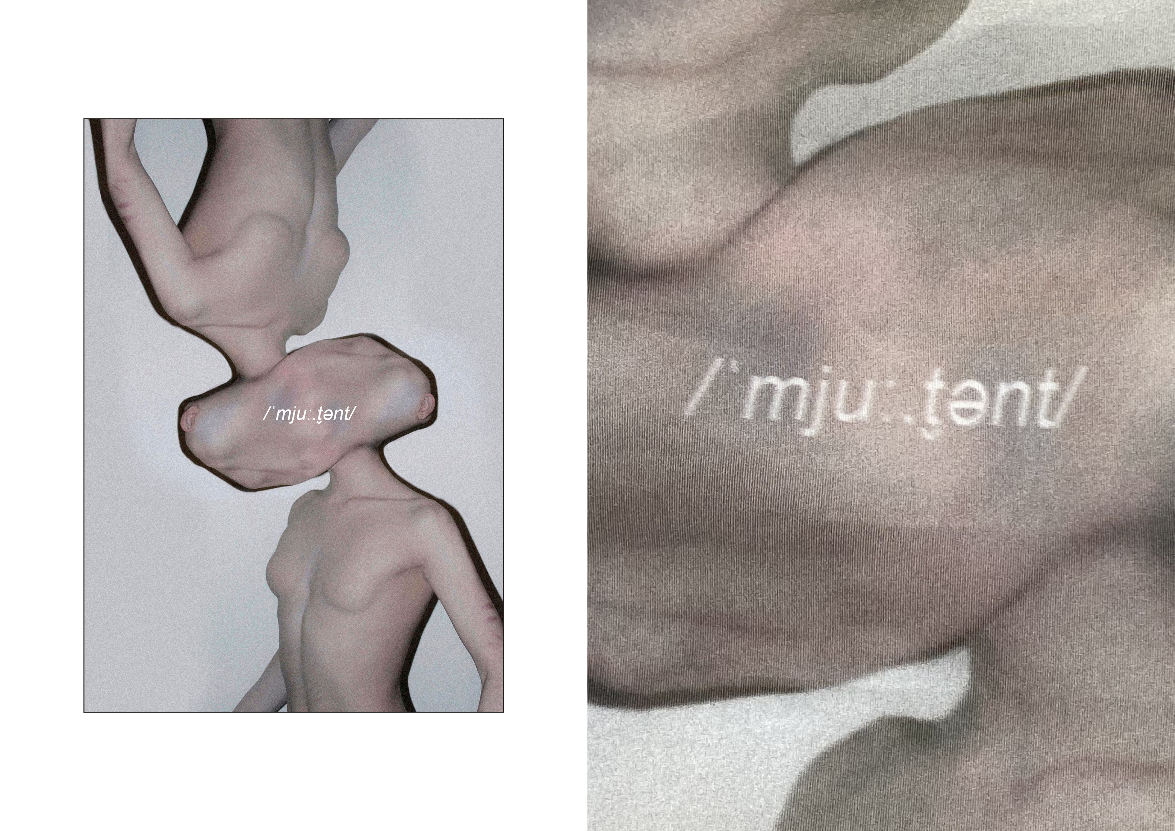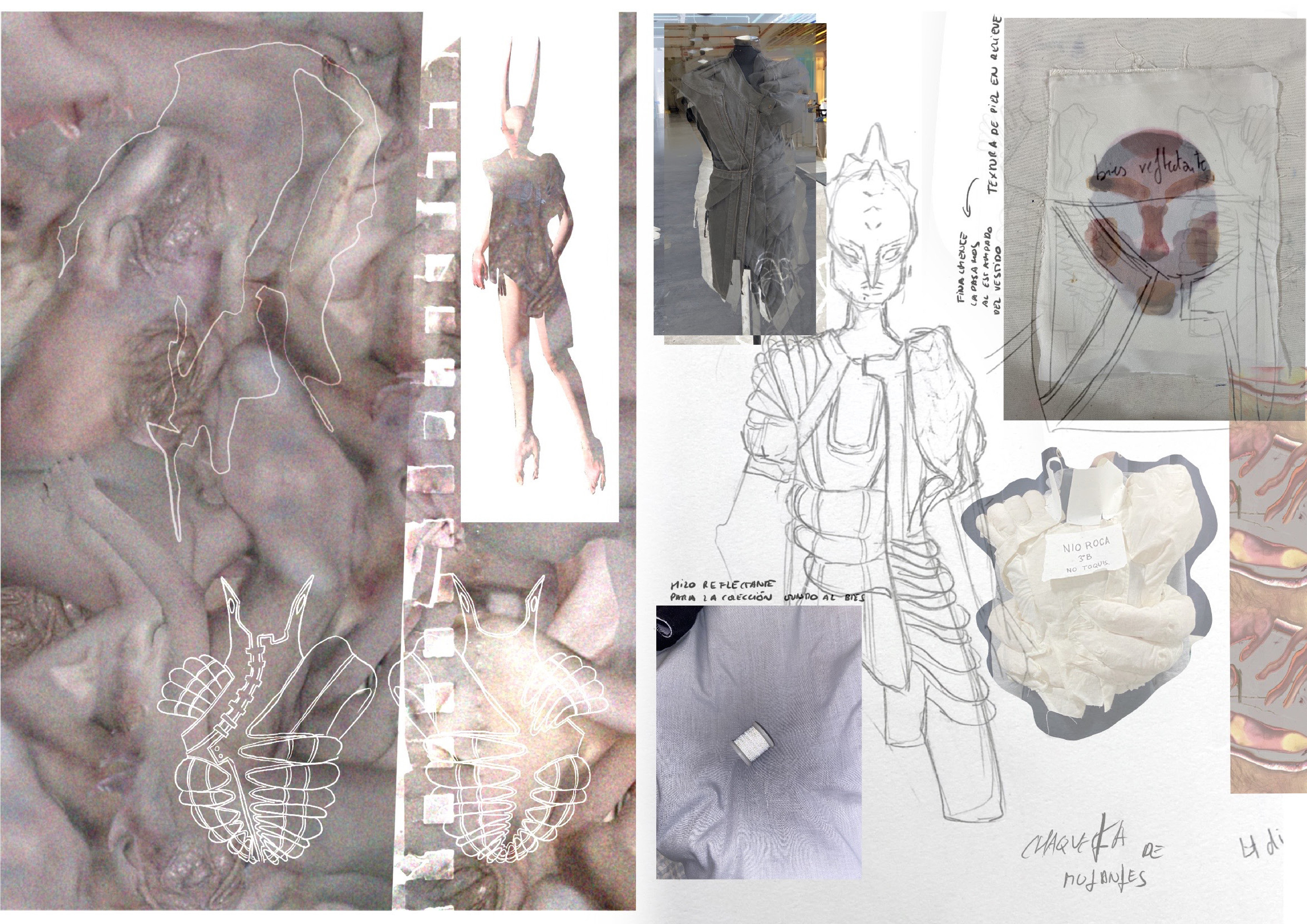 Esta colección trata sobre cómo vuelvo a renacer habiendo muerto psicológicamente, pues he mutado, y sigo en la carnicería de mutantes en la que me encontraba antes de morir expuesto desde una vitrina a clientes que quieren comprarme y comerme.